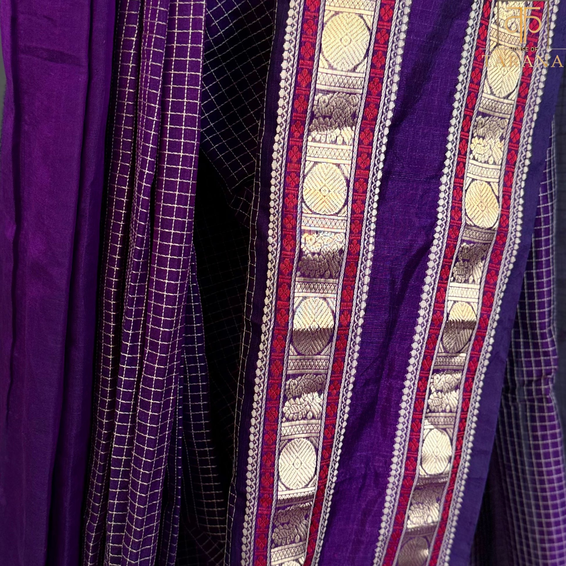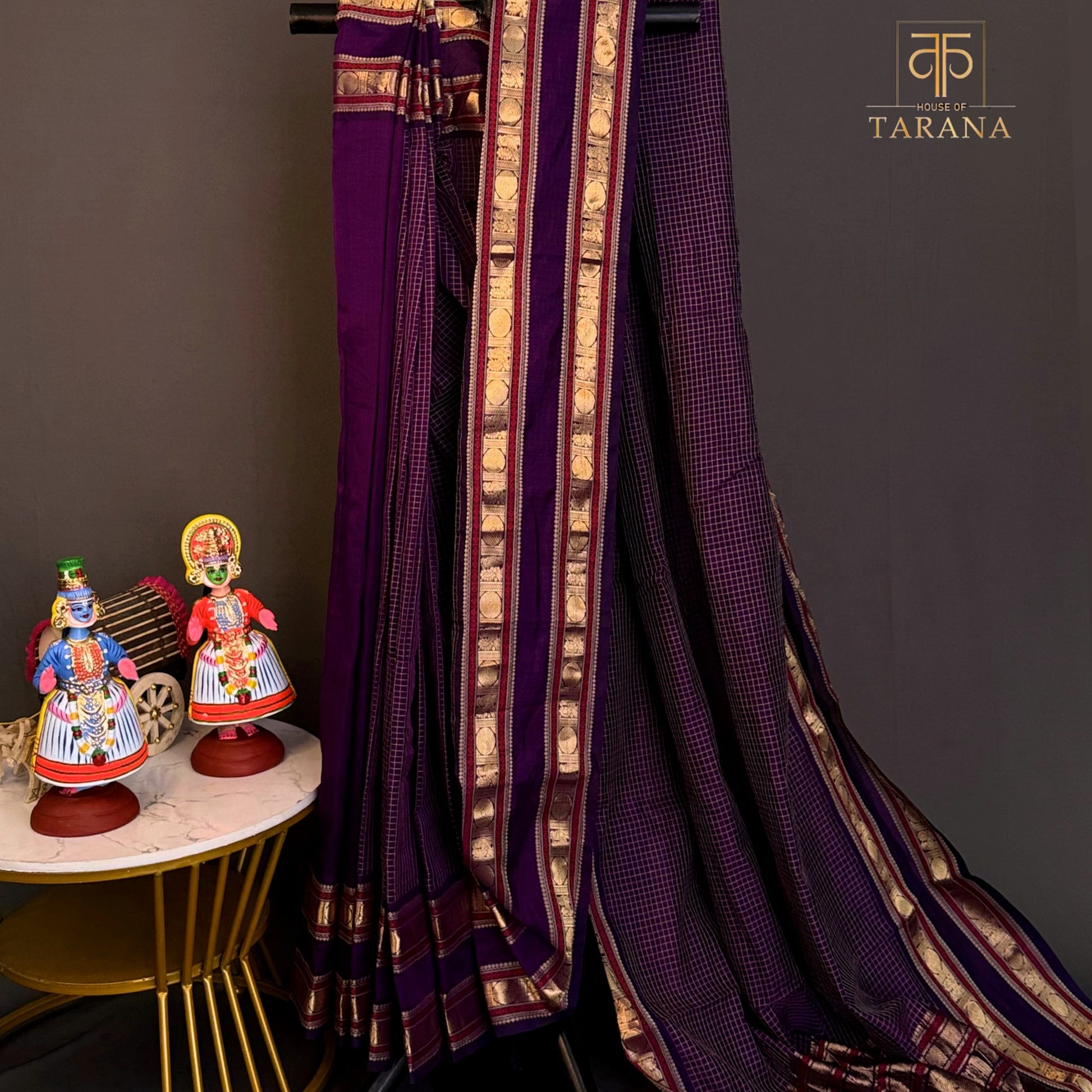 Pure Handloom more of Silk & less of Cotton (60:40) ratio. Enhance your traditional wardrobe with this dark blue silk cotton saree, featuring intricate peacock and rudraksha motifs woven in rich gold zari borders. Ideal for weddings and festive occasions, it offers a perfect blend of elegance and cultural artistry.